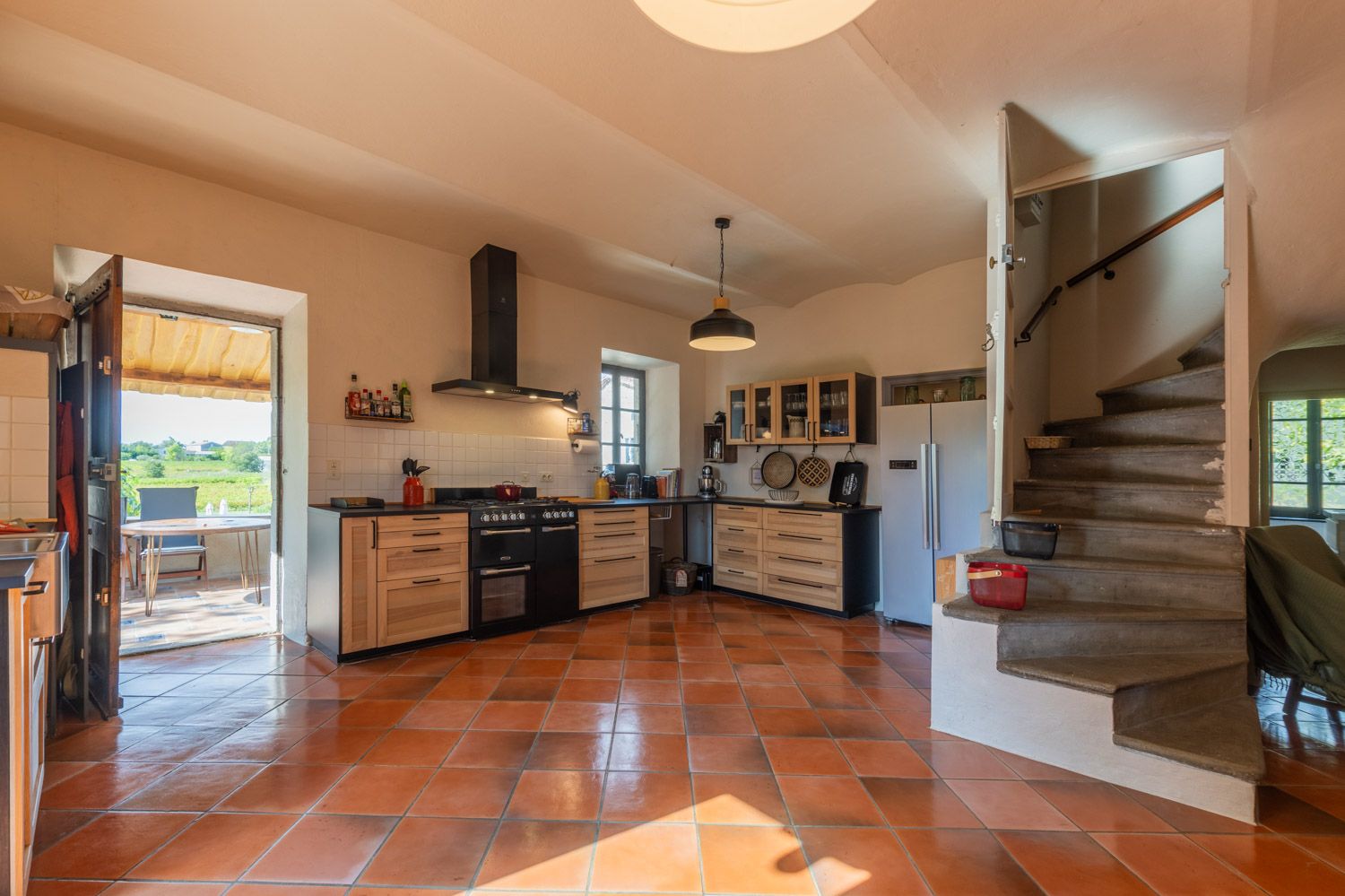 Behind the house to the southwest is the large courtyard with dining tables for 14 people, a high-quality gas barbecue, garden toys and a darts bar in the annex. The huge garden borders the village street on one side and the neighbours' vineyards on the other.
