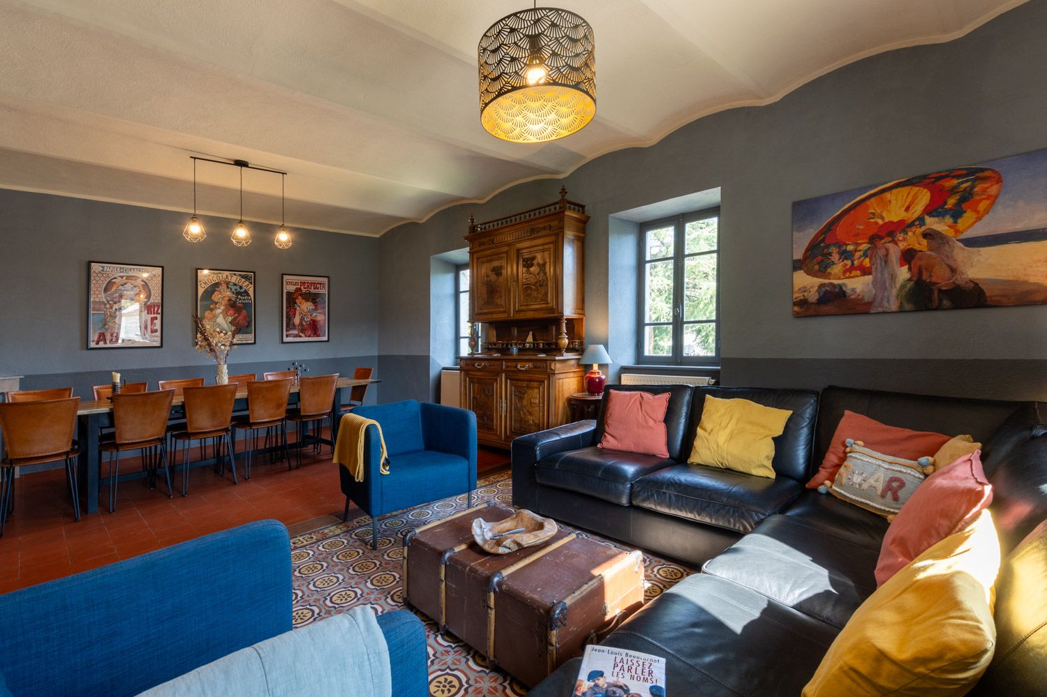 Our kitchen is equipped by foodies for foodies: 90cm gas stove with 5 burners, including 1 wok burner, 3 ovens, XL stainless steel sink, Kenwood food processor, ham slicer, carbon steel wok, Dualit toaster, high-quality chef's knives and fine china. Of course, there is also a Nespresso machine, several Bialettis and a stainless steel French press. Small items are available too, from a selection of peelers to mojito pestles, you’ll find everything a cook's heart desires. For the winter, you will find 6x2 raclettes that can be connected in series on our large, cozy dinner table.